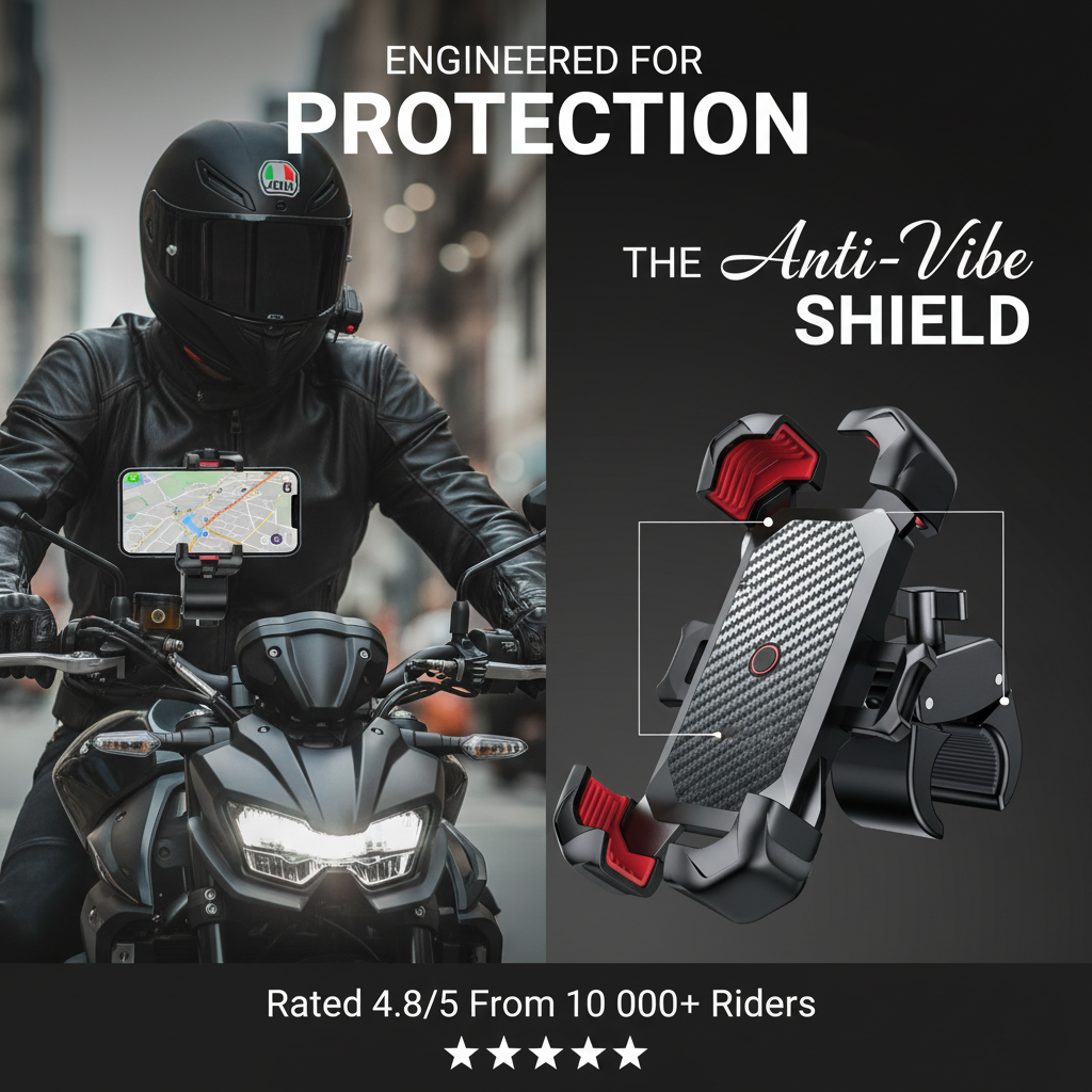This Anti-Vibration Motorcycle Phone Mount keeps your phone stable, locked, and protected on every ride.